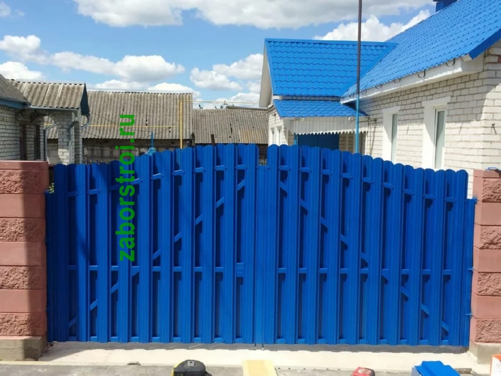 Ворота из евроштакетника распашные пример 14